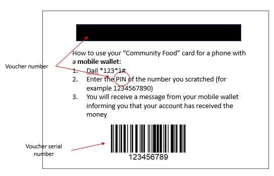 The merchant/agent will scan and interpret the medium in which the voucher is presented (this could be a QR code or a barcode or an SMS or even a printed number).